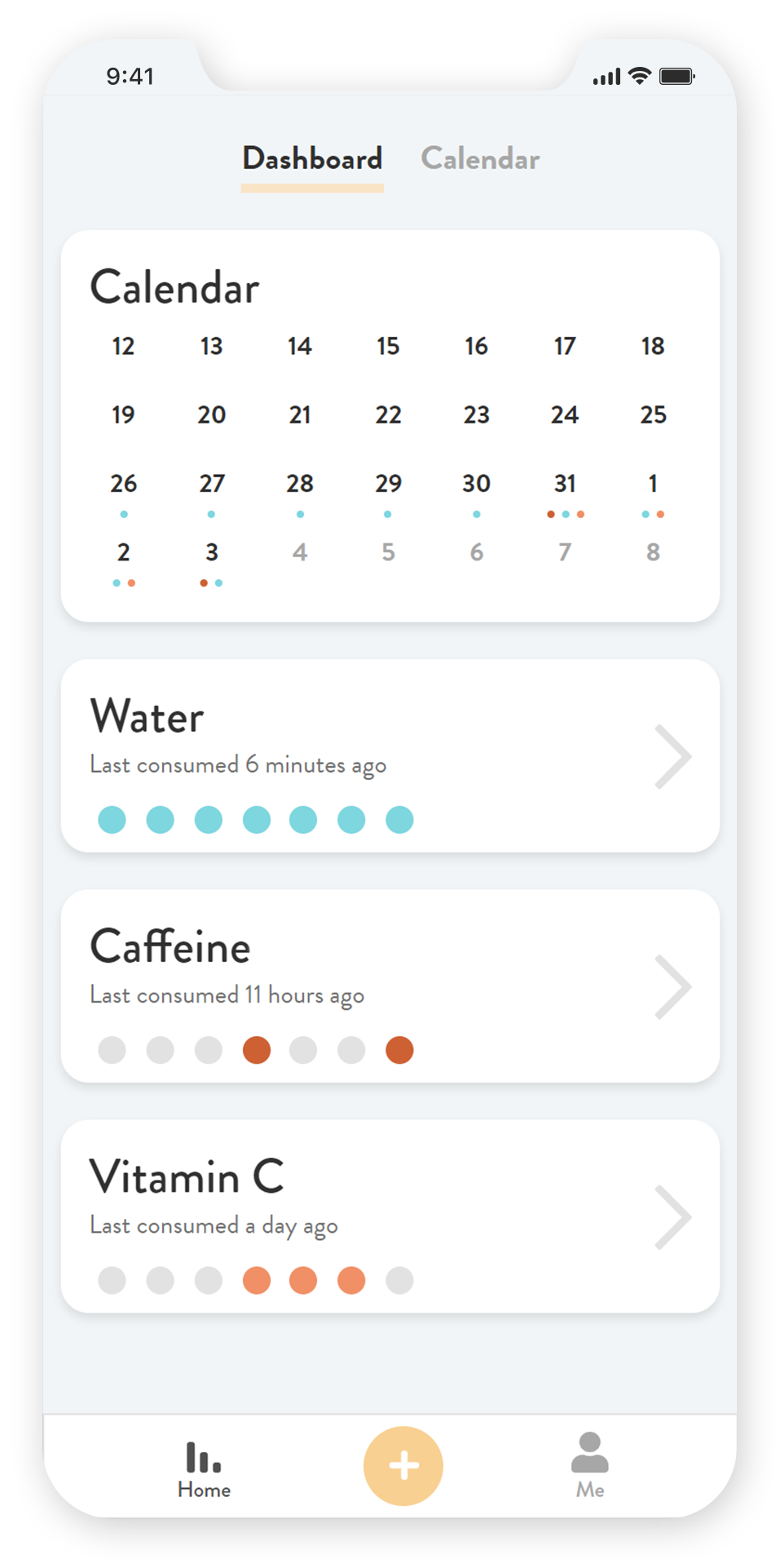 Our dashboard provides a lot of useful stats regarding your usage. The calendar gives you a clear overview of how much and how often you consume.
